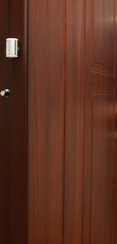Skrzydło drzwiowe o grubości 65 mm wykonane jest z blachy ocynkowanej, wypełnione styropianem, wzmocnione specjalnymi kształtownikami i prętami stalowymi. Współczynnik dźwiękochłonności 33 db zapewnia bardzo dobrą izolację akustyczną.