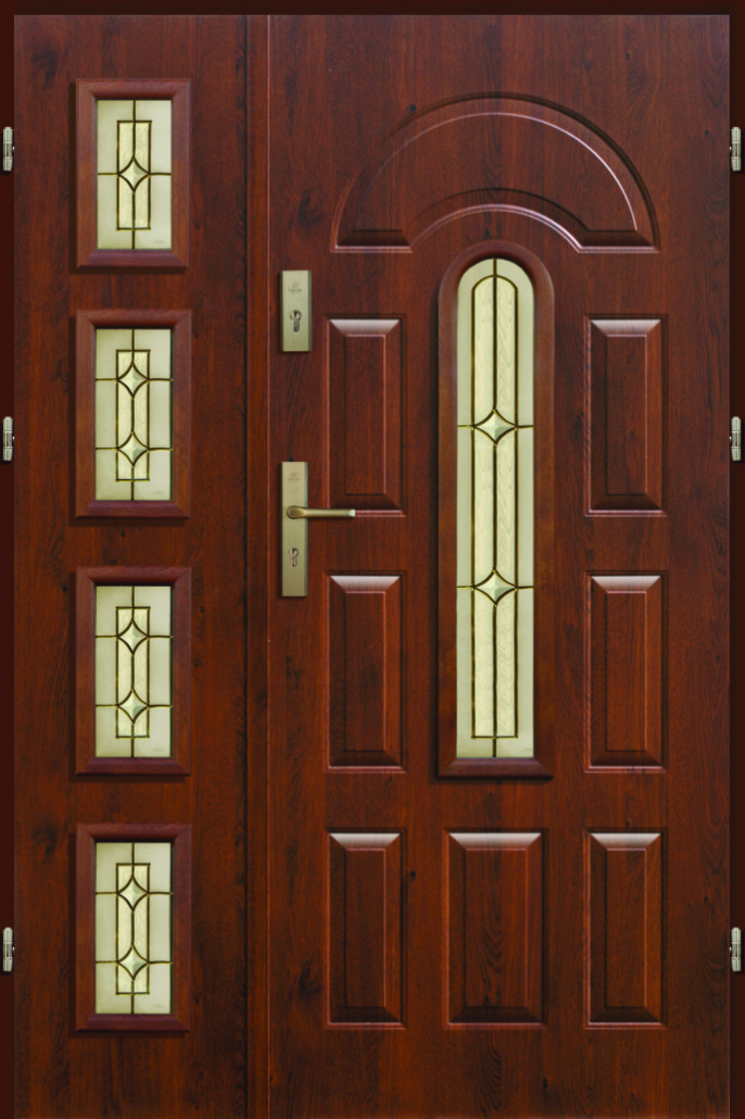 Produkowane przez "Stalprodukt Zamość" stalowe drzwi zewnętrzne dwuskrzydłowe doskonale prezentują się jako drzwi wejściowe w budownictwie jednorodzinnym. Wysoką trwałość i elegancki wygląd w wieloletnim użytkowaniu zapewnia unikalna technologia produkcji z wysokiej jakości blachy. Użytkowane zgodnie z instrukcją obsługi drzwi dwuskrzydłowe są odporne na warunki atmosferyczne zapewniając nie odkształcanie i nie opuszczanie się skrzydeł. Można je skonfigurować z dowolnym tłoczeniem skrzydła głębokotłoczonego dostępnym w ofercie. Sp. z o.o. Blacha, z której produkowane są skrzydła drzwiowe doskonale imituje naturalną strukturę drewna co w połączeniu z bogatą gamą kolorystyczną laminatów umożliwia każdemu klientowi optymalny wybór.